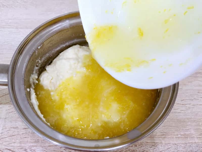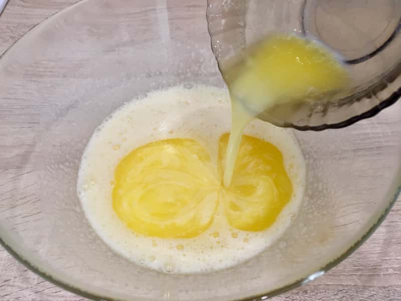 Вливаємо розтоплене вершкове масло, перемішуємо.