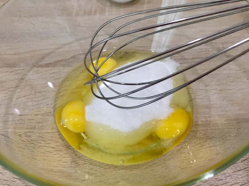 Цукор і яйця злегка збиваємо вінчиком.