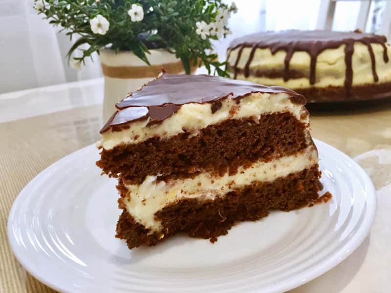 Корж розрізаємо на 2 частини і збираємо торт.