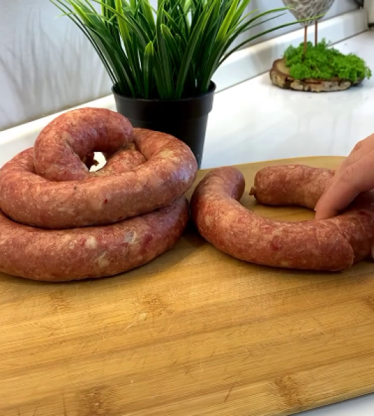 Готові ковбаски охолодити в крижаній воді 15 хвилин, обсушити рушником і прибрати до холодильника дозрівати на 12 годин!