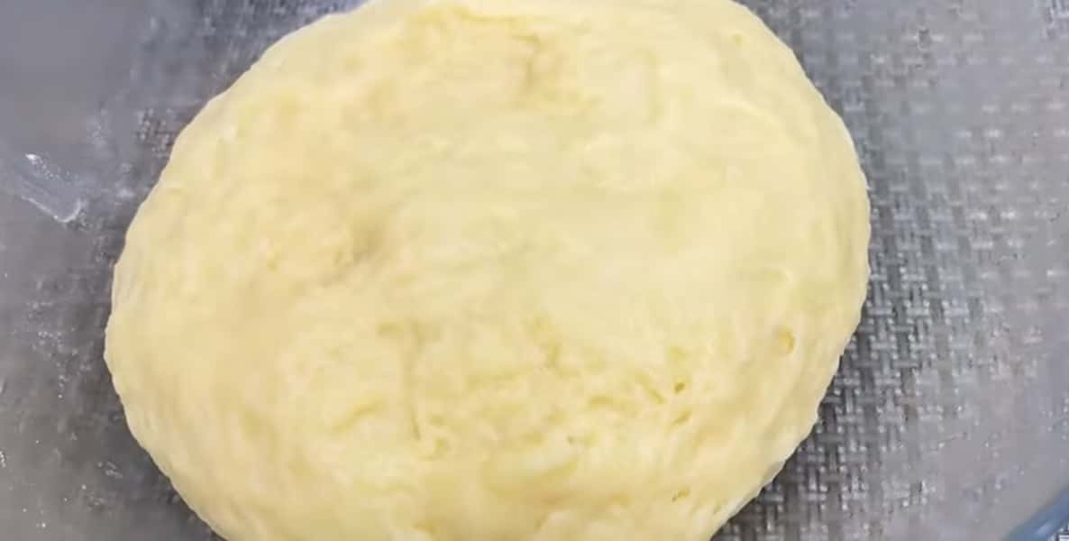 Додаємо борошно і перемішуємо. Замішуємо тісто і залишаємо під харчовою плівкою на 15 хвилин.