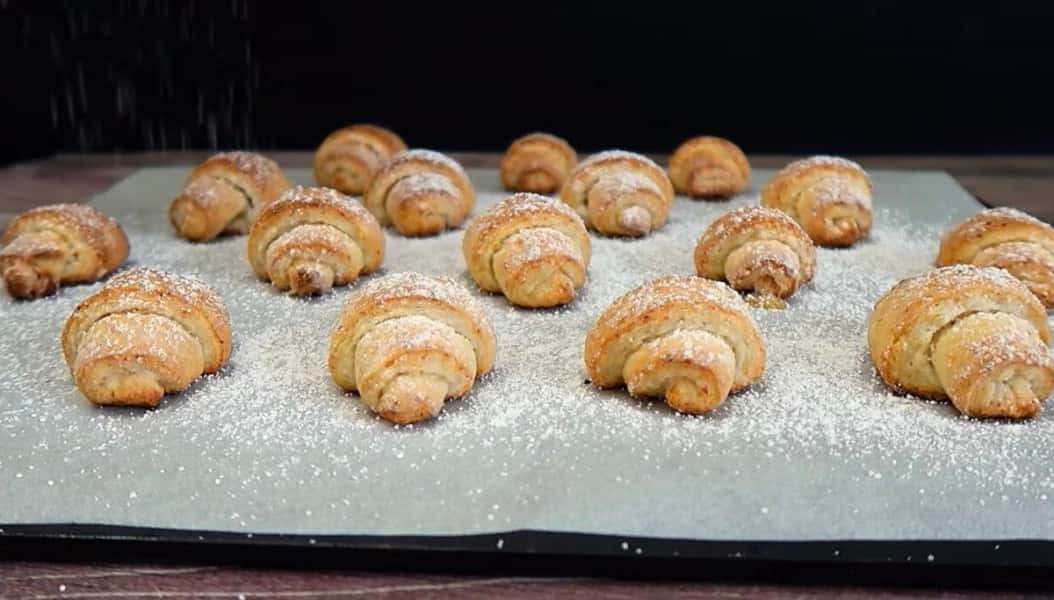 Готові рогалики присипаємо цукровою пудрою і подаємо до чаю!