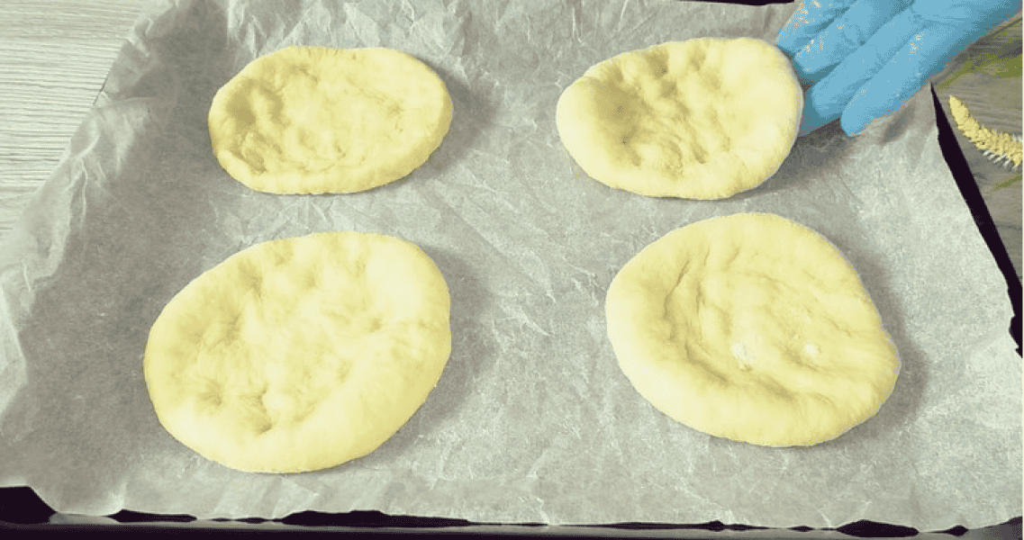 - Викладаємо коржики на лист, накрити і дати підійти в теплому місці.