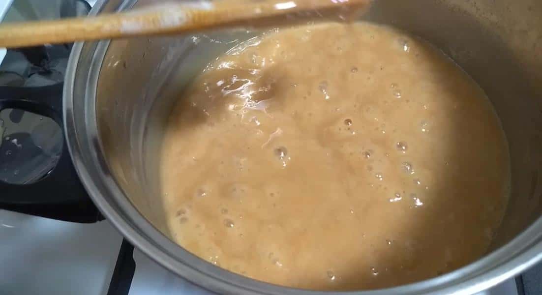 Молочна суміш закипіла, і періодично варимо помішуючи на вогні трохи нижче середнього, щоб маса кипіла.