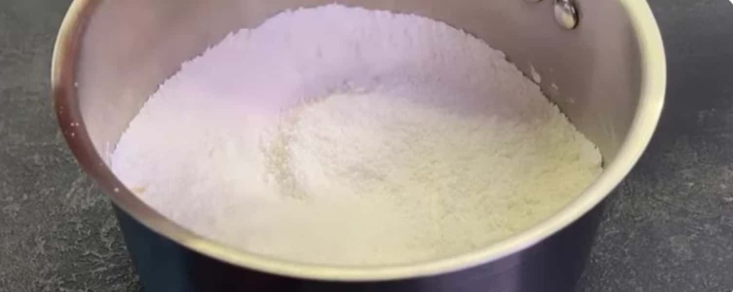 - У невелику каструлю додаємо цукор, крохмаль кукурудзяний (або борошно) і перемішуємо.