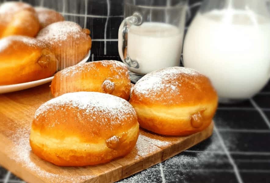 Пончики Берлінери – це смажені повітряні кругляші з начинкою всередині. На другий день не втрачають свого смаку: тісто таке ж м’яке, пористе і не гумове, а начинка може змінюватись в залежності від ваших уподобань (джем, крем, шоколад, конфітюр, згущене молоко і так далі).