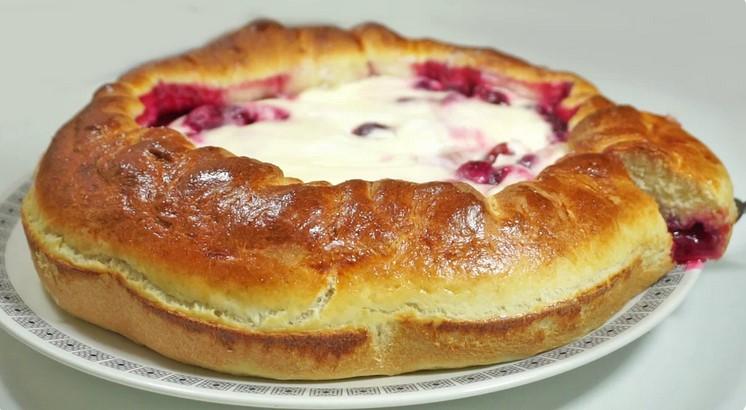 Випікати при 190 гр. 10 хвилин, потім витягнути пиріг з духовки та викласти сметану та посипати цукром та випікати ще 20-25 хвилин!