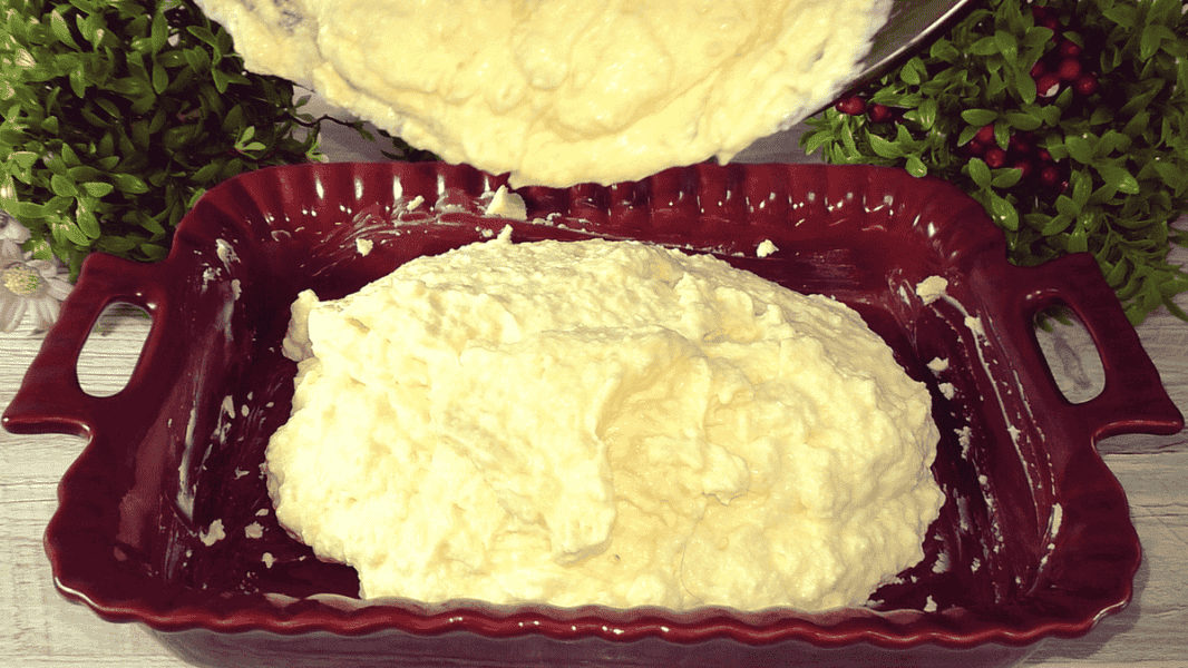 Викладаємо сирну суміш в форму, розрівнюємо.