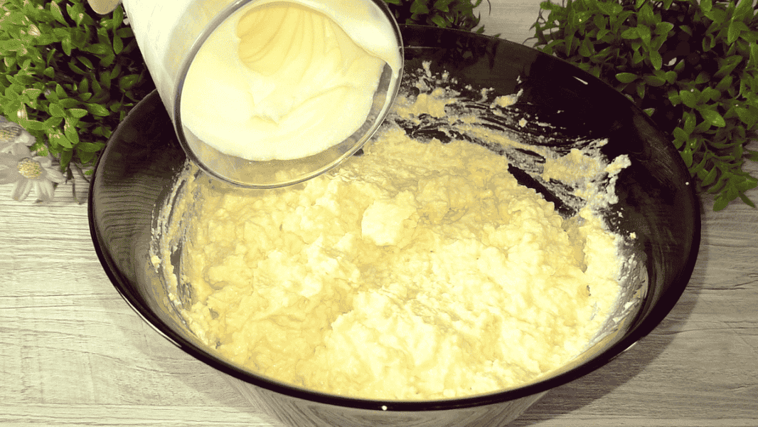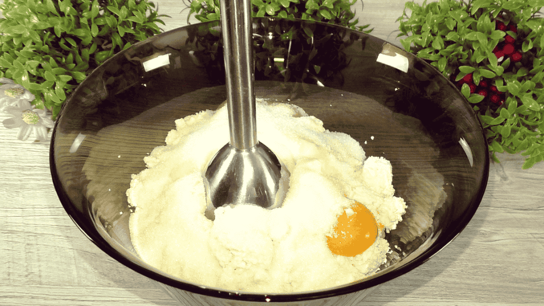Сирну масу подрібнюємо погружним блендером до однорідності.