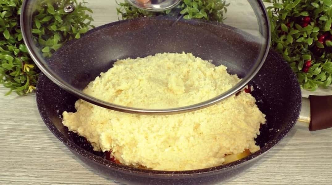 Накриваю сковороду кришкою. Забираю на плиту.