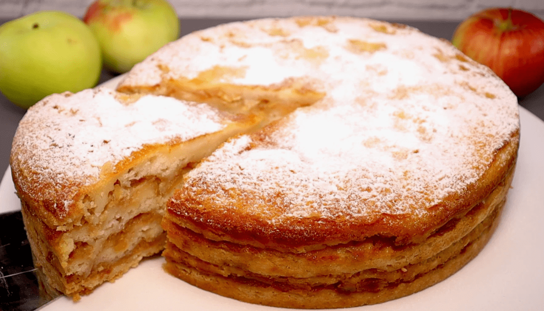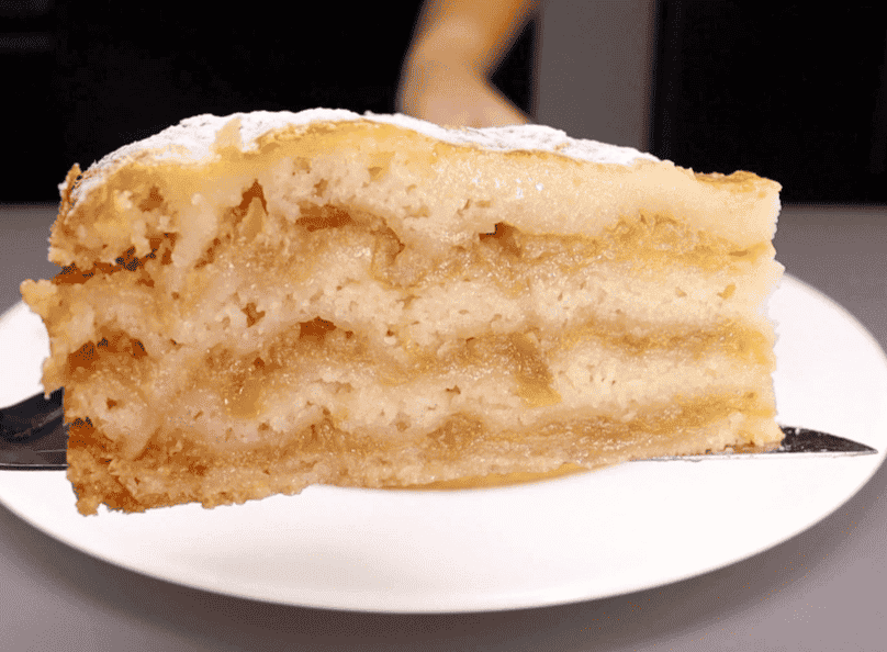 Присипаємо зверху цукровою пудрою і насолоджуємося ніжним смаком ароматного яблучного пирога. За смаком, це як торт чи якийсь ніжний десерт із кремом. Соковитий, вологий, дуже смачний!