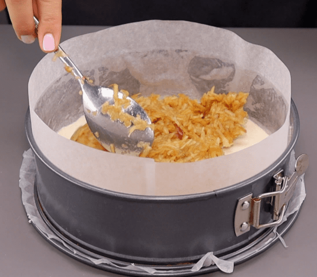 Якщо форма у вас не роз’ємна, то папір на дні форми теж потрібно приклеїти на масло.