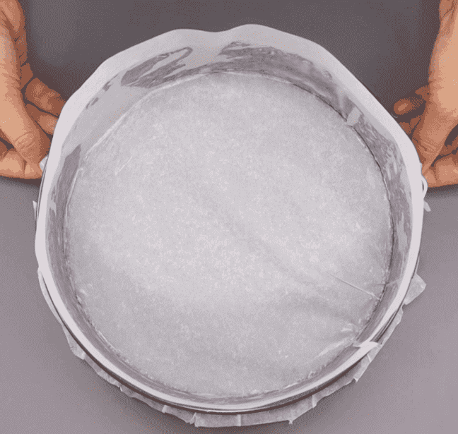 Беремо форму на 20 см. У мене роз’ємна, тому дно вистелюю папером і фіксую її бічною панеллю, а боки форми змащую вершковим маслом і лише потім теж застеляю папером, вирізаним за розміром.