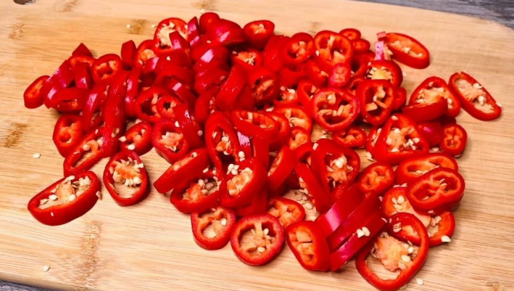 - Нарізаємо наш перець кільцями.