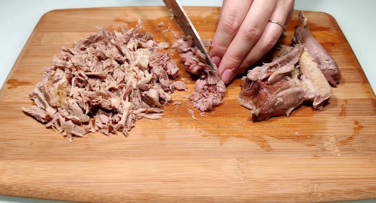 - Дрібно ріжу м’ясо кожної рульки.