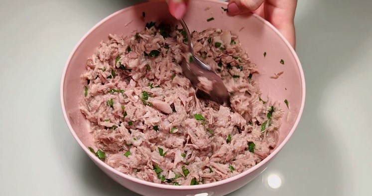 - У глибокій мисці змішую м’ясо рульки, петрушку і подрібнений часник. Додаю сіль та чорний перець за смаком. Заливаю рульки 2-3 ополониками бульйону. Перемішую інгредієнти.