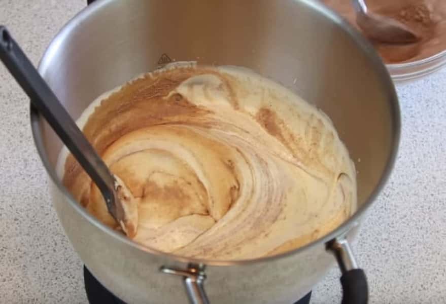 Після того, як яєчно-цукрова маса досягне необхідної консистенції, почніть поступово додавати до неї сухі інгредієнти. Зробити це необхідно за 3-4 прийоми. Перемішувати інгредієнти необхідно лопаткою, роблячи акуратні рухи знизу вгору та від країв до центру, щоб зберегти об’єм, отриманий після збивання яєць.