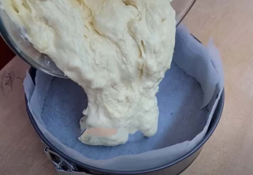 Обережно все перемішуємо за допомогою ложки. І перекладаємо у форму 22 сантиметри.