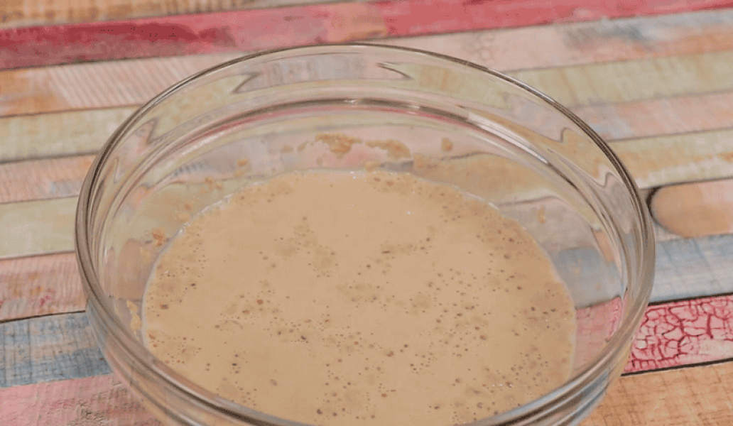 Для початку всі продукти повинні бути кімнатної температури. У 250 г теплого молока додаємо 1 ст. л. цукру (25 г) і всипаємо 12 г сухих швидкодіючих дріжджів (35 г живих). Перемішуємо та залишаємо на 10 хвилин. Дріжджі активуються і на поверхні молока з’явитися пишна пінна шапочка.